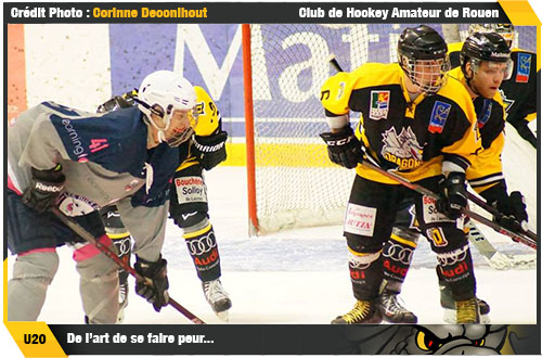 Comme une habitude, comme un moment que l'on attend avec impatience chaque saison, pour la cinquième fois consécutive, Dragons de Rouen et Gothiques d'Amiens s'affronteront en play-offs dans le cadre du championnat Espoir. Exception faite de l'édition 2014-2015 qui voyait la victoire des Dragons en finale sur Amiens, les trois autres confrontations s'étaient déroulées en demi-finale avec un léger avantage pour les rouennais deux succès (2013 & 2016) à un (2014), reste désormais à savoir ce que l'édition 2017 réservera aux protagonistes des deux équipes. Au cours de la première manche, le premier tiers livrera une belle empoignade entre les deux formations. Alors que Joran Reynaud ouvrait le score dans un angle fermé, douze secondes plus tard, sur l'engagement suivant, Thomas Suire trouvait l'égalisation pour les « rouge et noir » Bis repetita dans la foulée avec le but de Brieuc Houeix en double avantage numérique au plus fort de la tempête offensive picarde. Malmenés par les Gothiques, les rouennais seront contraints de céder une deuxième fois sous l'impulsion de Clément Garrido. 2-2 à la fin du premier tiers, 2-2 à la fin du deuxième, c'est dans la troisième période que les Dragons prendront leurs aises avec deux joueurs dans la lumière, Joran Reynaud et Brieuc Houeix qui s'offrait tous deux le doublé pour une victoire 4 buts à 2 (résumé) Jalonnée de nombreux rebondissements, l'histoire des confrontations entre les deux équipes ne permettait pas aux Dragons de se laisser aller à un optimise béat avant le deuxième match. Et de fait, sans jamais être distancé à plus d'un but, les Dragons devront tout de même batailler fort pour éviter une cruelle désillusion. Scénario symétrique par rapport au premier au match avec une première période soldée sur le score de 2-2 avec cette fois un doublé de Rudy Matima auquel répondait tour à tour à Julien Msumbu et David Fritz-Dreyssé. Contraints de courir après le score, les rouennais se retrouveront également dans la misère au deuxième tiers avec le troisième but de Louis Olive. Par trois fois, les Gothiques s'étaient approchés du retour en grâce, par trois fois ils ne parviendront pas à breaker au tableau d'affichage, le défenseur rouennais, Victor Durand égalisant à 3-3 avant de voir son alter ego défensif Jules Lefebvre porter le coup de grâce pour une victoire 4-3 (résumé) Alors que les sempiternels « on est en finale ! « surgissaient des tribunes de l'Ile Lacroix, un dernier chapitre restait à écrire pour les Dragons, la conclusion en finale à Grenoble face à des Brûleurs de Loups de Grenoble solides vainqueurs 5-0 et 3-0 face à Hockey 74.