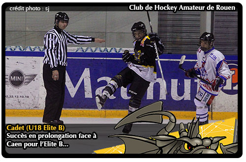 En effet, à domicile face aux Jets de Viry-Châtillon, les Rouennais surprendront les parisiens en s'offrant l'ouverture du score par Juraj Stefanka. Alors que Lucas Mousset pour Viry égalisait, taquin, à dix minutes de la fin du match, Axel Benet offrait le but de la victoire 2-1 aux rouennais (résumé) Dans le wagon de tête après la première journée, les Dragons devaient profiter un maximum, les premiers nuages de grisailles s'amoncelant déjà au dessus de leurs têtes avec un déplacement à Meudon-la-Forêt particulièrement compliqué par les Normands. Pris à froid d'entrée de jeu par les franciliens avec deux buts en quatre minutes, Romain Solloy tentait bien d'édulcorer le score à 2-1 mais indéniablement, plus prompt à exploiter les largesses défensives rouennaises, Meudon s'en donnait à cœur joie à l'image de Vincent Garcia, auteur du doublé. Jamais totalement décrochés à l'image du deuxième but de Victor Ranger, les rouennais ne seront pas, néanmoins, en mesure de renverser le match et devront céder 5 buts à 2. Du coup, ce n'est pas nécessairement en toute sérénité que les Dragons aborderont un double week-end consacré au derby de la Normandie. Sur les bords de Seine, l'affaire tournera au drame pour les dragons au rythme des buts compilés par les caennais. Alors qu'au plus fort de la tempête caennaise, Mathieu Mony parvenait à offrir un rayon de soleil en marquant l'unique but jaune et noir, les cinq buts marqués par Caen leur offrait une logique victoire 5-1 (résumé) Glissant inexorablement vers le bas du classement, ce n'est pas le match retour disputé chez les Drakkars qui changera la donne. Là encore, Caen se montrait le plus véloce au moment d'entamer la rencontre. Prompts à exploiter les failles défensives rouennaises, les Caennais s'illustraient en menant 4-1 au score après 28 minutes de jeu. Même si par l'entremise de Lucas Bicheux, Axel Benet et Harmand Poupart, les rouennais se montraient besogneux et accrocheurs en revenant à 4-4 faisant dire au défenseur rouennais Nicolas Dutheil « Même si nous avons perdu le match, nous n'avons jamais baissé les bras. » , au début du troisième tiers, des buts d'Alexandre Ferey et Théophile Miquelot auront raison des espoirs rouennais avec à la clef une victoire bas-normande 6-4 (résumé) Toujours sur le bénéfice de leur unique succès à domicile face à Viry-Châtillon, face aux deux ténors du classement, le miracle n'aura pas lieu pour les Dragons. Cherchant à se rassurer à l'image de Maxime Laboulais avant la rencontre alsacienne « Nous connaissons un début de saison assez moyen avec une première victoire pour la première journée suivie de trois défaites. L'équipe est assez jeune avec une moitié de Minime et l'autre de Cadet, une fois que l'équipe sera bien soudée, nous pouvons espérer faire quelque chose. Face à Caen pour notre dernier match, nous avons fait une bonne partie mais notre indiscipline nous a clairement handicapé. Contre Strasbourg, nous nous attendons à un match difficile même si je ne connais pas bien l'équipe de Strasbourg. Je sais qu'ils ont quelques joueurs talentueux qui ont la capacité de marquer et qu'ils ont un bon collectif qui nous a fait perdre notre match contre eux l'année dernière. A nous d'être solides défensivement pour relancer rapidement le jeu, d'être efficace dans le pressing et surtout jouer collectif avec un bon esprit d'équipe.» (présentation) les craintes rouennaises seront clairement confirmées durant la rencontre. Sans jamais exister, les rouennais recevront une belle fessée en bonne et due forme. Balayés 9-2 à Strasbourg (résumé), les Dragons, englués dans une spirale de défaite, se ressaisiront face au leader tourangeau en dépit d'un nouveau revers. Mis à mal par le doublé de Romain Bournand dans le premier tiers, les rouennais s'accrocheront tout au long de la rencontre. Au dessus, Tours s'imposera 4-2 (résumé) mais cette fois Rouen ne lâchera pas l'affaire et offrira une belle résistance à des remparts impossibles à franchir en l'état des choses pour les Dragons.
