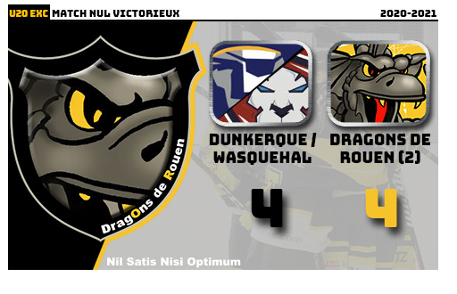 Clairement tournée vers la formation et l'aguerrissement des plus jeunes, l'équipe U20 excellence rouennaise s'offrait sa première virée de la saison dans le nord à Dunkerque pour y croiser une plus expérimentée équipe de Dunkerque / Wasquehal. Et le moins que l'on puisse dire, c'est qu'avec son armée de 2004, 2005 pour deux 2003, les rouennais auront fait preuve d'une belle pugnacité touchant même de près la victoire au terme d'une rencontre à la fin particulièrement rocambolesque soldée sur le score de 4-4.