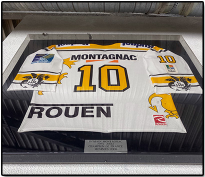 Au-delà de l’indescriptible drame qui marquera l’ensemble de cette génération et le CHAR, le club choisira de lui rendre hommage pour l’éternité en retirant le numéro du maillot qu’il portait, le numéro 10. Romain est né le 15 février 1985 au Havre. C’est d’ailleurs dans la patinoire de la Porte Océane qu’il donna ses premiers coups de patin à l’âge de 6 ans. Partie intégrante de toute une génération de talentueux havrais, les Nicolas Besch, Geoffroy Augereau et autre Julien Tillou qui prendront l’autoroute vers la ville aux cent clochers, Romain Montagnac débarqua sur l’Ile Lacroix en 2000 pour intégrer à l’époque l’équipe U16 (minime) rouennaise. Une première année courageuse faite d’allers-retours entre Le Havre et Rouen avant de se poser dans un appartement sur l’Ile Lacroix pour intégrer les entrainements du sport-étude et le légendaire lycée Val de Seine au Grand-Quevilly.