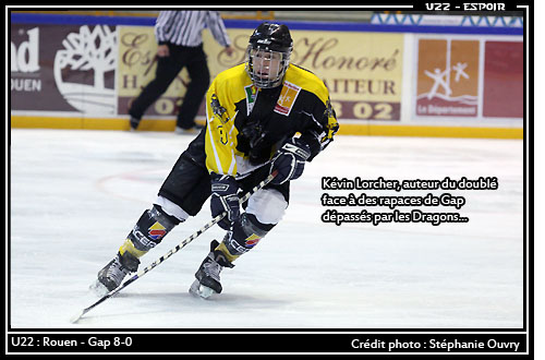 Les uns rentrés de Gap à 11h00 le matin en Ligue Magnus, les autres de la Roche sur Yon à 3h00 en Division II, les Espoirs rouennais à domicile face à Gap ce dimanche, n'auront pas chômés pour leur samedi. Quoiqu'il en soit, les jeunes Dragons auront assuré plus que le minimum syndical en disposant de rapaces endormis 8 buts à 0.