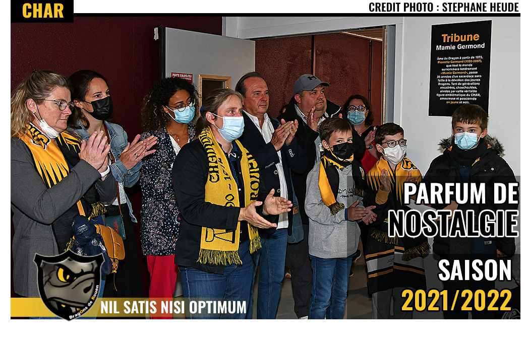 Ce mardi à l'occasion de la première rencontre de Ligue Magnus entre le Rouen Hockey Elite 76 et les Boxers de Bordeaux, régnait un parfum de nostalgie avec l'inauguration de la tribune « Mamie Germond » en hommage à Pierrette Germond, l'une des âmes bienveillantes du club qui passa trente-cinq années de dévouement au service des, non de ses petits Dragons.