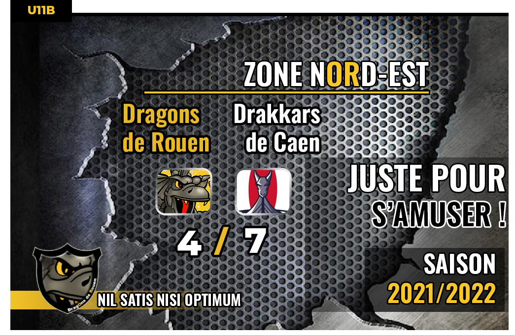 En difficulté lors de la deuxième période, les jeunes Dragons auront le mérite de s'accrocher et de lutter jusqu'au bout. Bien sur, les affaires n'étaient pas toujours souriantes avec le sixième but de Caen marqué rapidement (37'22) mais loin d'être boudeurs, les seino-marins feront face en réduisant le score à 4-6 (51'22) Si malheureusement pour la tribu jaune et noir, son homologue de Caen aura le dernier mot avec un septième et dernier but (53'39), les rouennais pouvaient s'enorgueillir d'avoir fait de leur mieux et gardant en tête le sourire et le plaisir de jouer. C'est bien là l'essentiel.