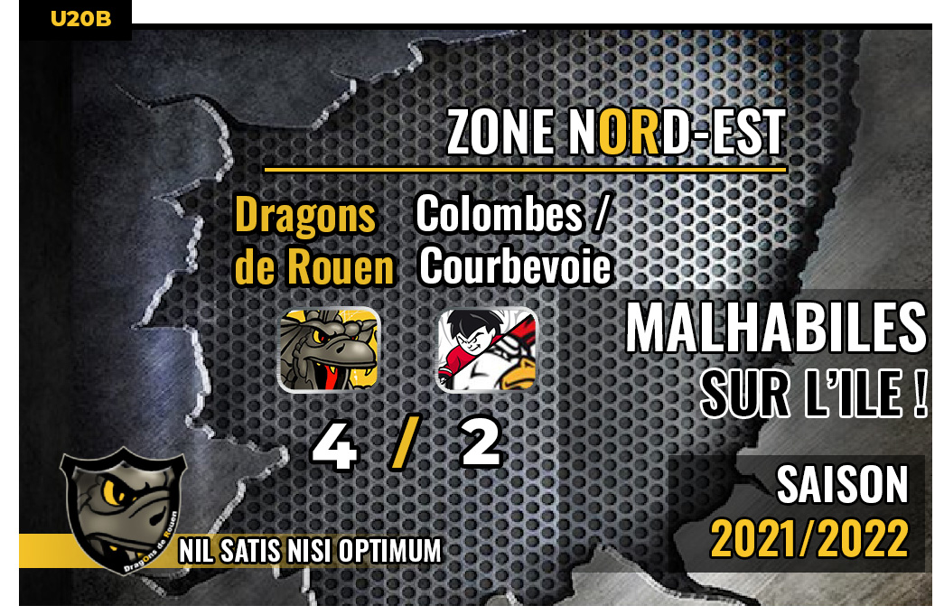 Difficilement vainqueurs dans le nord le week-end dernier 3 buts à 1 face à l'association Valenciennes / Wasquehal, les Dragons de la U20 Excellence rouennaise, cette fois à domicile, seront parvenus à enchaîner un deuxième succès de suite face l'association Colombes / Courbevoie (victoire 4 buts à 2)