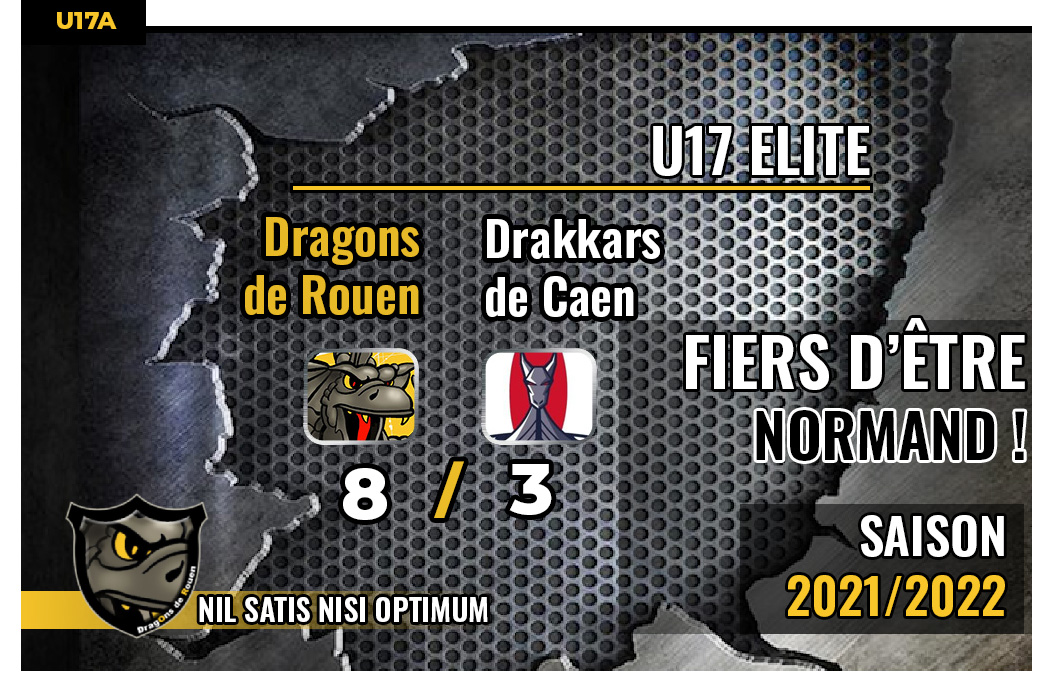 Même si à nouveau Caen trouvait les ressources pour réduire la marque en début de troisième tiers par le spécialiste local, Ysvan Allouis (46'47), l'avance acquise en fin de deuxième tiers laissait suffisamment de marge aux Dragons pour leur laisser le temps de voir venir d'autant plus que quelques minutes après le troisième but des Drakkars, Paul Le Lem, pour les Dragons, se chargeait de fusiller subtilement le portier adverse pour porter le score à 7 buts à 3 (50'38) Déjà auteur d'un triplé face à Angers et avec déjà huit buts au compteur cette saison dont deux sur la rencontre, Anatole De Mal mettra un point d'honneur à conclure cette partie avec un huitième et dernier but jaune et noir, le 8-3 (57'48), synonyme de troisième succès de suite pour les Dragons et de la conservation jaune et noir face à Caen sur l'Ile Lacroix. De quoi être fiers d'être Normand !