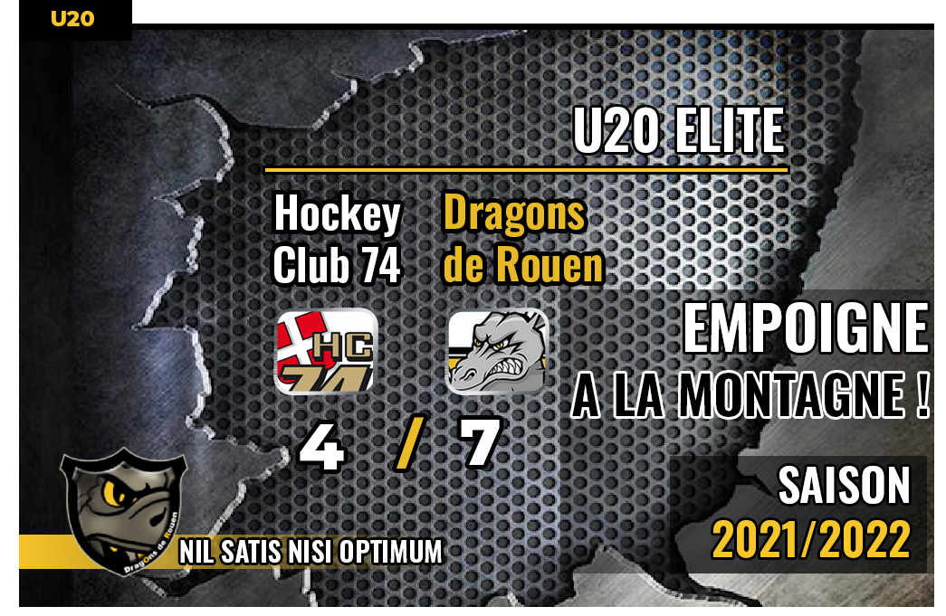 Victoire 7 buts à 4 pour les Dragons, un bien beau succès pour les rouennais au terme d'une belle empoigne à la montange qui leur permet d'engranger un cinquième succès en six rencontres, une unique défaite au compteur à domicile face à Grenoble, justement le prochain adversaire des Rouennais. Le Dragon en salive déjà....
