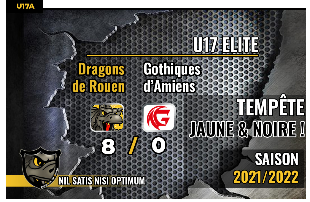 Rivalité oblige, même dans une poule de niveau différente, les confrontations entre Amiens et Rouen, qui plus est sur l'Ile Lacroix, sont des rendez-vous attendus, de part et d'autre avec ce petit frisson en plus de vaincre.. ou pas, l'éternel rival. Et pour cette 54ème édition du « derby des plaines » en Cadet Elite, ce sont les Dragons qui se tailleront la part du lion en s'imposant sur leur glaçon 8 à 0, la plus grosse victoire d'une équipe rouennaise infligée à son adversaire amiénois dans l'histoire du cadet élite.