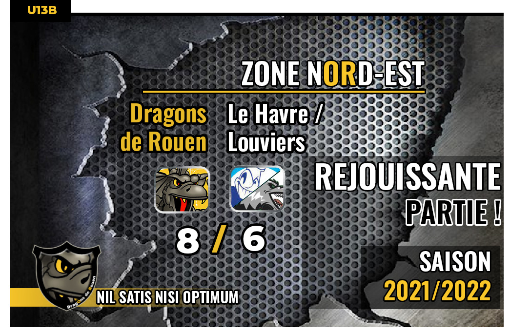 Pour leur première rencontre de championnat, les U13B rouennais auront livré une épique partie face à leurs voisins de Le Havre / Louviers avec à la clef une jolie victoire à domicile sur le score de 8 buts à 6.
