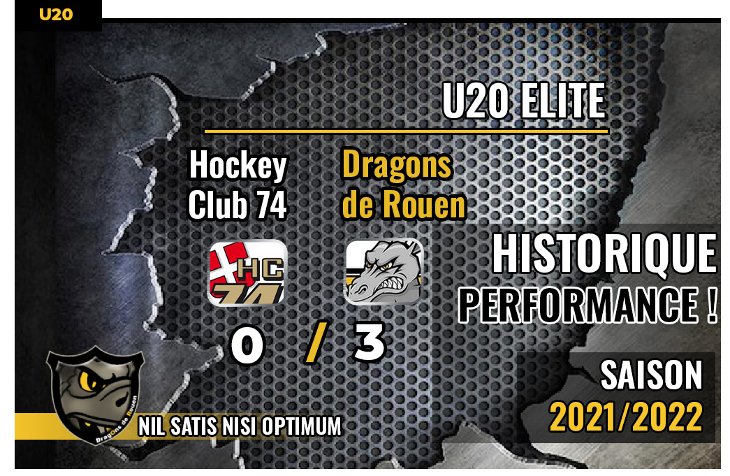 Si dans l'histoire des Dragons qu'ils soient U20, U21 ou U22, on retrouve trace d'un premier blanchissage, à domicile, face aux Diables Rouges de Briançon, le 13 avril 1996, jamais, les Normands n'auront été en mesure d'enchainer autant de match sans prendre le moindre but. Alors que la formation jaune et noir trône au sommet du classement des spécialistes des « clean sheet » avec 73 blanchissages dans son histoire pour 63 pour son éternel dauphin grenoblois, dans son histoire les rouennais étaient déjà parvenus à faire une passe de trois sur deux saisons : une finale remportée face à Grenoble 5-0 le 12 avril 2009 suivie la saison suivante de deux succès lors des deux premières journées face à Viry-Châtillon (9-0) et Villard-de-Lans (10-0) Trois à la suite, série interrompue par l'équipe du Mont-Blanc à l'époque (victoire 9-6) à la troisième journée. Cette fois, c'est Hockey 74 qui aura laissé la porte ouverte aux Dragons pour leur permettre de signer une historique et inédite performance, toutes équipes confondues, de quatre victoires sans concéder le moindre but.