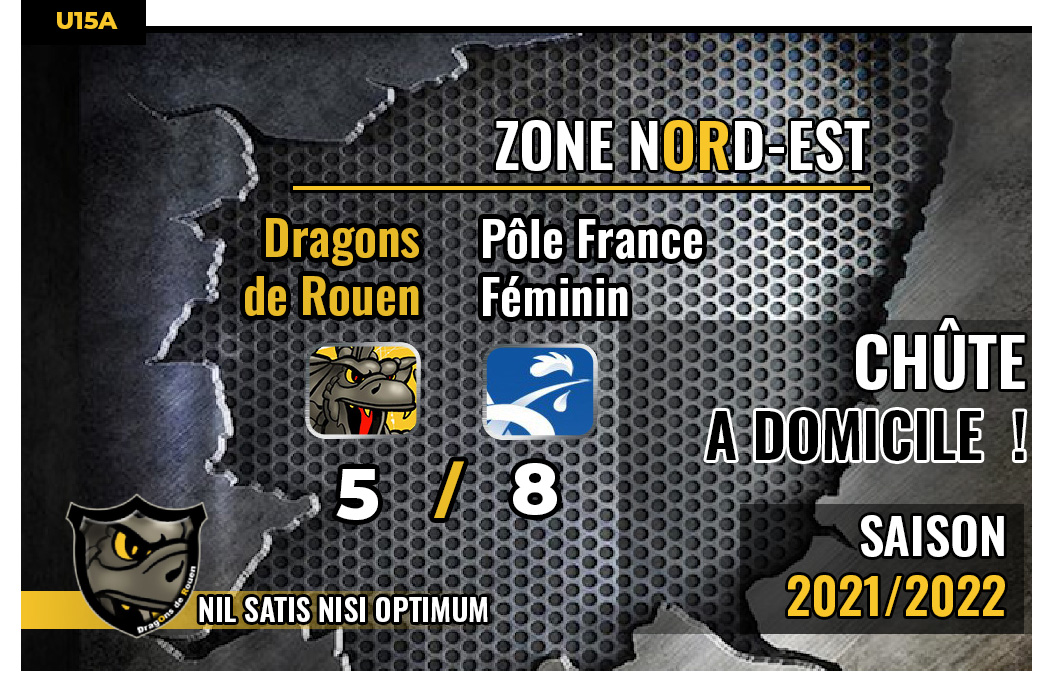 Dès l'entame de la rencontre, les affaires s'annonçaient compliquées pour les Dragons. En effet, en dépit de l'ouverture rapide du score d'Hugo Bernier (01'09) pour les rouennais, rapidement le Pôle France Féminin s'accaparait les faveurs du tableau d'affichage, retournant en quelques minutes la situation grâce à deux buts, l'un pour Lisa Cedelle (07'35), l'autre pour Shana Casanova (11'09) Dans une première période particulièrement haletante, les Rouennais en inscrivant un deuxième but par Léo Quemion (13'18) pensaient bien avoir fait le plus difficile en revenant à parité mai hélas les dernières secondes de la périodes étaient fatales à la formation jaune et noir avec un but sur le couperet de Jude Barbirati pour le 3-2 (19'59)