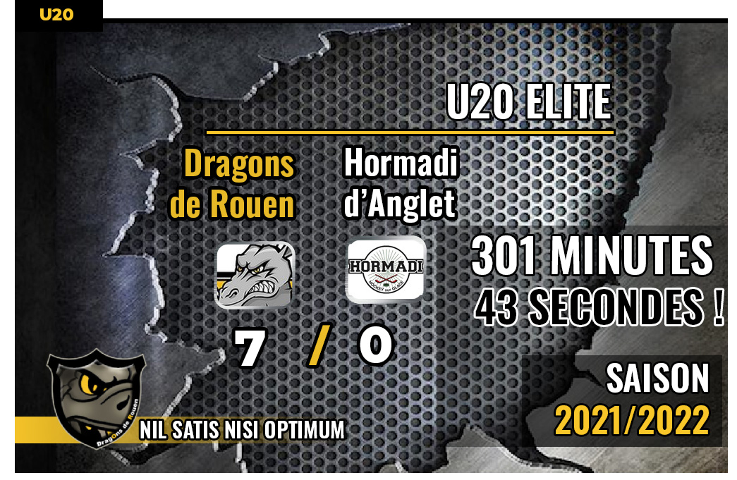 Placée sous le signe de la solidarité avec une rencontre totalement dédiée à l'association « Les Messagers de l'Espoir », le match entre les U20 rouennais et leurs homologues d'Anglet semblait sur le papier dépareillé au regard des deux premières confrontations entre les deux équipes, l'une au pays Basque pour une victoire jaune et noir 9-2, l'autre sur les bords de Seine pour une pléthore de buts et un succès 16-2. Pour leur troisième confrontation, les Dragons gèreront leurs affaires à nouveau en s'imposant 7-0. Le cinquième blanchissage de suite, série en cours.