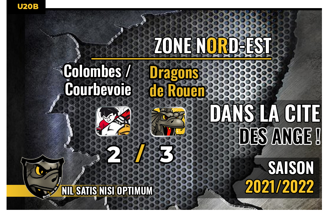 Pour une majeure partie de l'escouade jaune et noir, que le réveil fut ardu avec un retour de Gap en U17 tôt dans la matinée pour repartir aussi sec en région parisienne. Pas de quoi effrayer un Dragon qui mettra néanmoins une vingtaine de minutes avant de prendre l'ascendant dans cette partie sou l'impulsion du défenseur Thomas Malhouitre auteur du premier but après seulement seize secondes jouées en deuxième période (20'16). L'ouverture du score mettant du baume au cœur de la troupe normande, c'est tout naturellement que cinq minutes plus tard, Paul Le Lem mettait son grain de sel et sa touche personnelle en doublant la mise pour le camp des Dragons (26'39) Un 2-0 fort agréable pour la Normandie qui ne restera malheureusement pas en l'état, avant la mi-match, Sacha Ilievitch pour Colombes / Courbevoie ramenant le score à 2-1 (28'55) Si les dix dernières minutes du tiers médian resteront peu prolixes offensivement, les Rouennais parviendront néanmoins à retrouver leur break d'avance au tableau d'affichage par l'entremise d'Anatole De Mali pour un précieux troisième but (31'55)