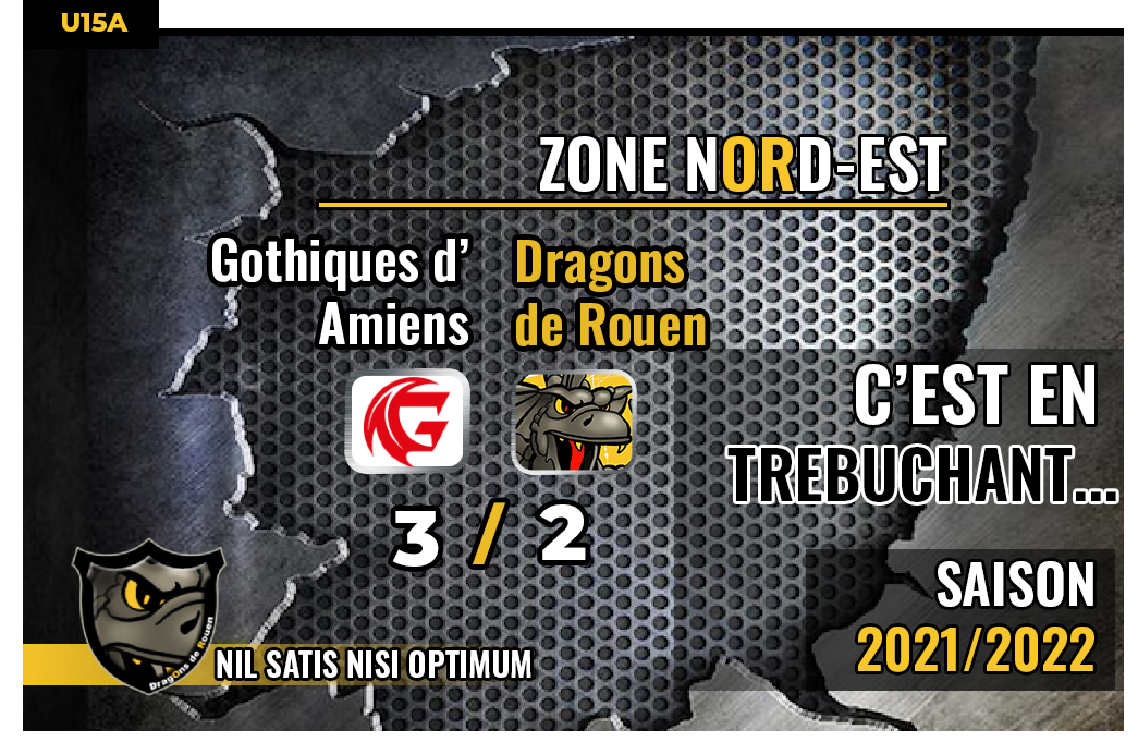 « C'est en trébuchant que l'on avance », pleine de sagesse, cela pourrait-être sans hésiter la maxime liée à la rencontre U15 disputée entre les Dragons de Rouen et les Gothiques d'Amiens qui aura vu la défaite des rouennais 3 buts à 2 en dépit d'une jolie performance dans les filets seino-marins, d'un Maxim, cette fois, Lavoie.