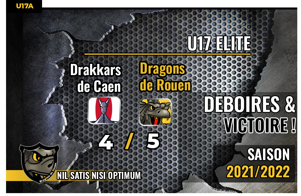 Au sortir d'un week-end grenoblois mi-figue, mi-raisin, les Dragons U17 Elite avaient à charge de se relancer à quelques kilomètres de leur camp de base traditionnel du coté de la patinoire de Caen. Et le moins que l'on puisse dire pour la formation jaune et noir, c'est que les affaires seront bien compliquées avec une bien courte victoire 5-4 chez les Drakkars.