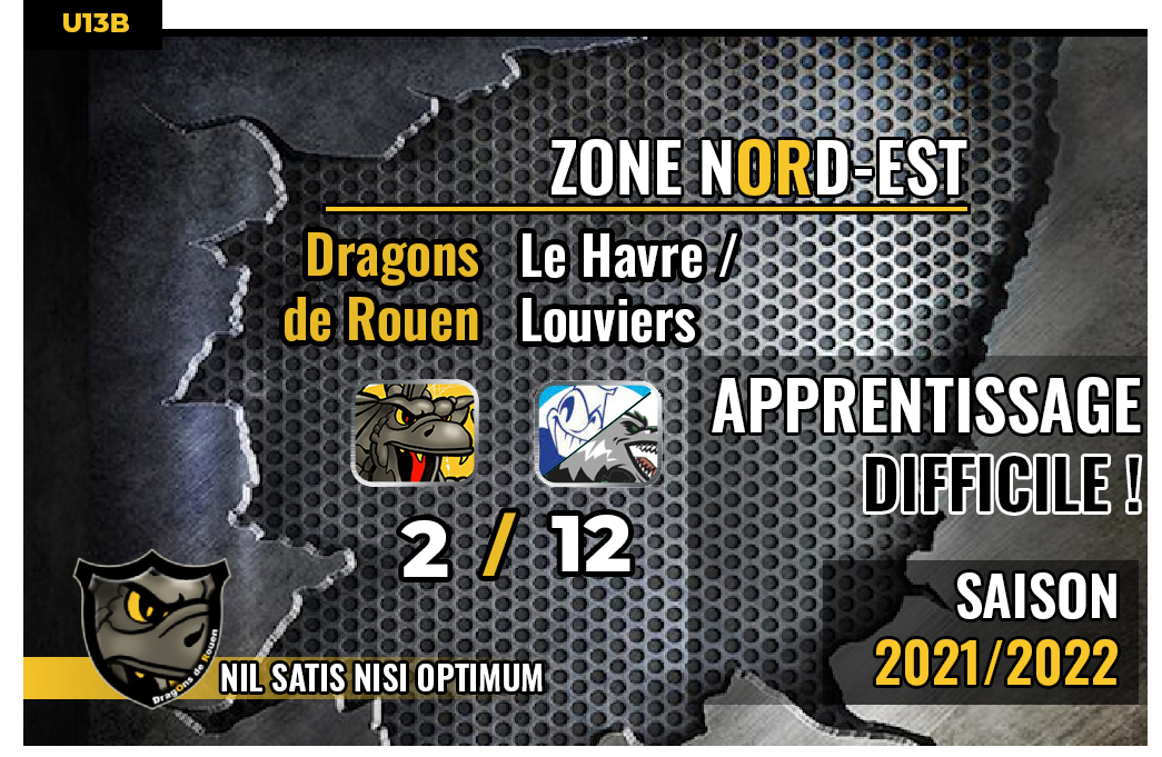 Face au patron de la poule, Le Havre / Louviers, les Dragons U13B auront tenté de d'offrir une belle résistance sur l'Ile Lacroix. En vain, en dépit de leurs efforts, les rouennais s'inclinent 2-12 pour un apprentissage aussi difficile qu'utile.