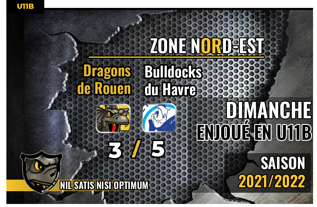 Petite rencontre dominicale entre les U11B rouennais et leurs copains du Havre. Une belle petite rencontre enjouée qui aura vu la victoire des havrais 5 buts à 3. Après une première sans but, la deuxième séquence de dix-huit minutes allait donner lieu à quelques petites frayeurs pour les gardiens de deux cotés. Premiers à se mettre dans la lumière, les Havrais qui envoyaient l'un des leurs se frayer un chemin au milieu de trois Dragons pour l'ouverture du score. Moins d'une minute sera nécessaire aux rouennais pour apporter leur réponse sur un lancer que le portier havrais avait toutes les peines du monde à maitriser. Le rebond, ainsi lâché, profitait aux garnements offensifs jaune et noir qui se ruaient sur la cage pour pousser le précieux morceau de caoutchouc au fond des filets de leurs copains havrais.