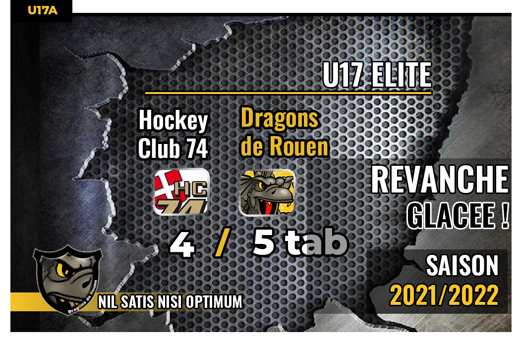 Après le lourd revers subi la veille face à Hockey 74, l'heure était à la revanche pour les Dragons U17 toujours face aux Haut-Savoyards avec deux buts dans les deux premières minutes qui les mettront dans des conditions parfaites pour s'imposer au final 5-4 aux tirs aux buts.