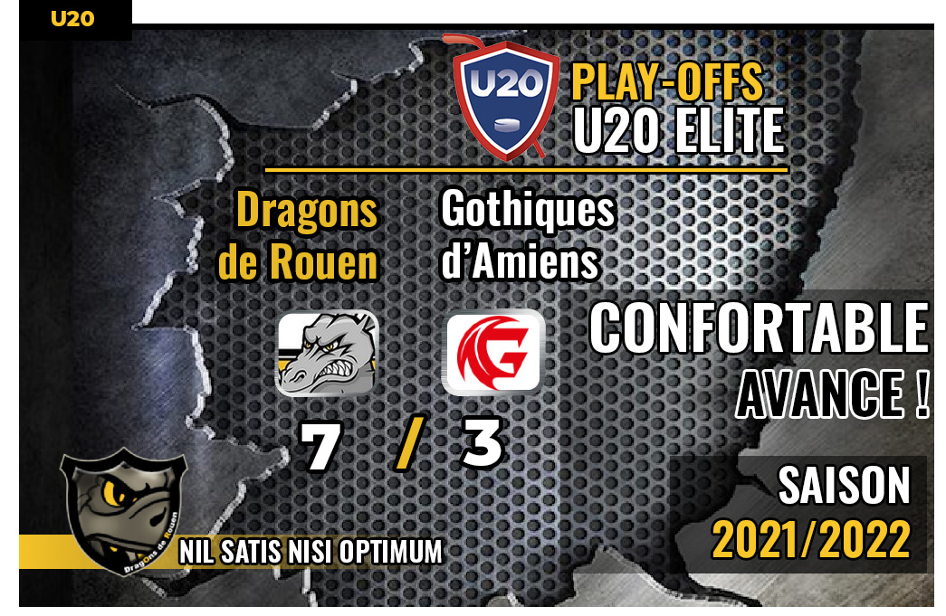 Après le premier succès acté des U17 face à Amiens 7-3, la deuxième confrontation de la journée entre Gothiques et Dragons, cette fois en U20, donnera lieu à un nouveau sourire dans le camp des rouennais avec une probante victoire 7 à 3.