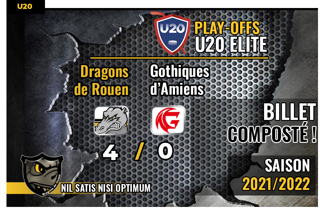 Dans une situation analogue aux U17 rouennais, c'est une marge de quatre buts que les Dragons U20 abordaient leur deuxième rencontre face aux Gothiques d'Amiens. En s'imposant 4 à 0, les rouennais décrochent également leur billet en demi-finale.
