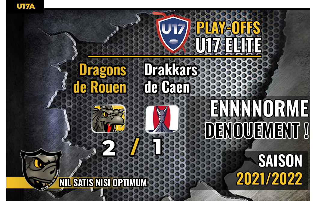 Rangez les calculatrices, aucun calcul à faire, un seul objectif pour Caen et Rouen à l'occasion de cette deuxième manche des ½ Finales du championnat de France U17 : remporter le match pour décrocher sa place en finale. Et du suspense il en sera question toute la rencontre. Une équipe de Caen incroyable de solidarité, de vaillance qui tiendra sa place en finale jusqu'à la dernière minute du match où Rouen trouvera les ressources pour égaliser et arracher la victoire à quelques secondes de la fin du match. Enooorme dénouement pour une équipe de Dragons qui ne voulait pas mourir.