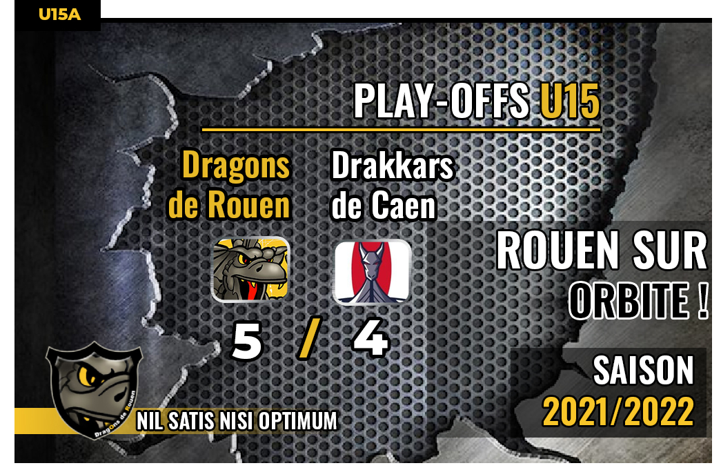 Deuxième journée à Angers pour les Dragons U15 et deuxième rencontre des quarts de finale cette fois face aux Drakkars de Caen. Après leur succès la veille face aux Basques, non sans mal, les Rouennais auront récidivé en s'imposant 5 buts à 4 grâce notamment à un troisième tiers de feu qui leur permettra de renverser une situation bien compromise.