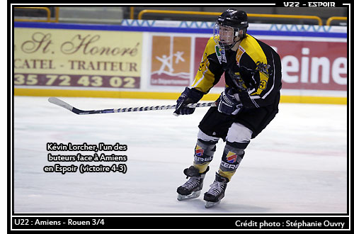 Difficile victoire pour les Espoirs rouennais en Picardie pour le compte de la 13ème journée du championnat Espoir Elite. Après avoir connu par deux fois le succès face aux Picards (8-1 à l'extérieur et 5-0 à domicile), les Dragons auront peiné en s'imposant 4 buts à 3 au Coliséum d'Amiens. Mis en difficulté par l'ouverture du score de Valentin Claireaux (19'06) avant la première sirène, les Rouennais mettront à profit la deuxième période pour inverser la tendance. Ainsi, après l'égalisation de Valentin Dumélié (28'30), Léo Guillemain (31'03), Kévin Marias-Magill (39'50) & Kévin Lorcher (39'58) tous trois en avantage numérique, permettaient à l'équipe jaune et noire de s'envoler au tableau d'affichage. Bien que menant 4 buts à 1, les Dragons se relâcheront durant le troisième tiers laissant espérer leur adversaire du jour. Marius Serer en avantage numérique (45'53) réduisait le score tandis que Valentin Claireaux (49'30) toujours en avantage numérique soldait les comptes à 4-3.