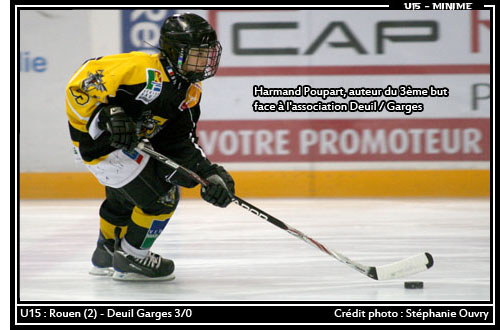 Week-end chargé pour nos U15 qui remontaient sur le glaçon pour cette journée dominicale avec une confrontation les opposants au club parisien de Deuil/Garges. Avec comme gardien de la forteresse de Rouen, Raphaël Garnier, la partie s'engageait avec un premier shoot d'Antonin Cartron qui trouvait le portier parisien (01'42) Moins de deux minutes plus tard, un premier cachot pour un « faire trébucher » seino marin offrait l'occasion à la défense de faire le travail bien aidé par « l'ami Raph' » qui gérait parfaitement. Une pénalité dans chaque camp venait clore ce tiers qui s'achevait sur un score vierge.