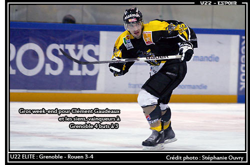 Dans l'optique de décrocher la première place de la saison régulière, les Espoirs Rouennais en déplacement à la patinoire de Pole Sud auront donné un joli coup de patin en s'imposant face à Grenoble 4 buts à 3. Pourtant fortement amoindrie par les blessés et les joueurs retenus pour disputer la finale de la Coupe de France à Paris-Bercy, la « très jeune » formation au Dragon aura sorti son plus joli coeur pour s'imposer sur le glaçon isérois au terme d'une rencontre accrochée. A égalité 1-1 à l'issue de la première période, Valentin Dumélié en fin de période ayant donné la réponse à l'ouverture du score en avantage numérique de Joris Bedin, les Dragons effectueront tout au long de la rencontre une course effrénée après le score. Par trois fois, les grenoblois mèneront au score, par trois fois, les Dragons reviendront. Ainsi, à Loup Benoit, Clément Gaudeaux rétorquait, tandis que Maxime Joly donnait la réplique à César Joffre concluant la marque de la deuxième période à 3-3. Un match au cordeau qui tournera à l'avantage des Normands durant l'ultime manche. Au détour d'un double avantage numérique, Quentin Berthon donnait la victoire aux siens concluant ainsi une belle victoire normande sur le score de 4 buts à 3.