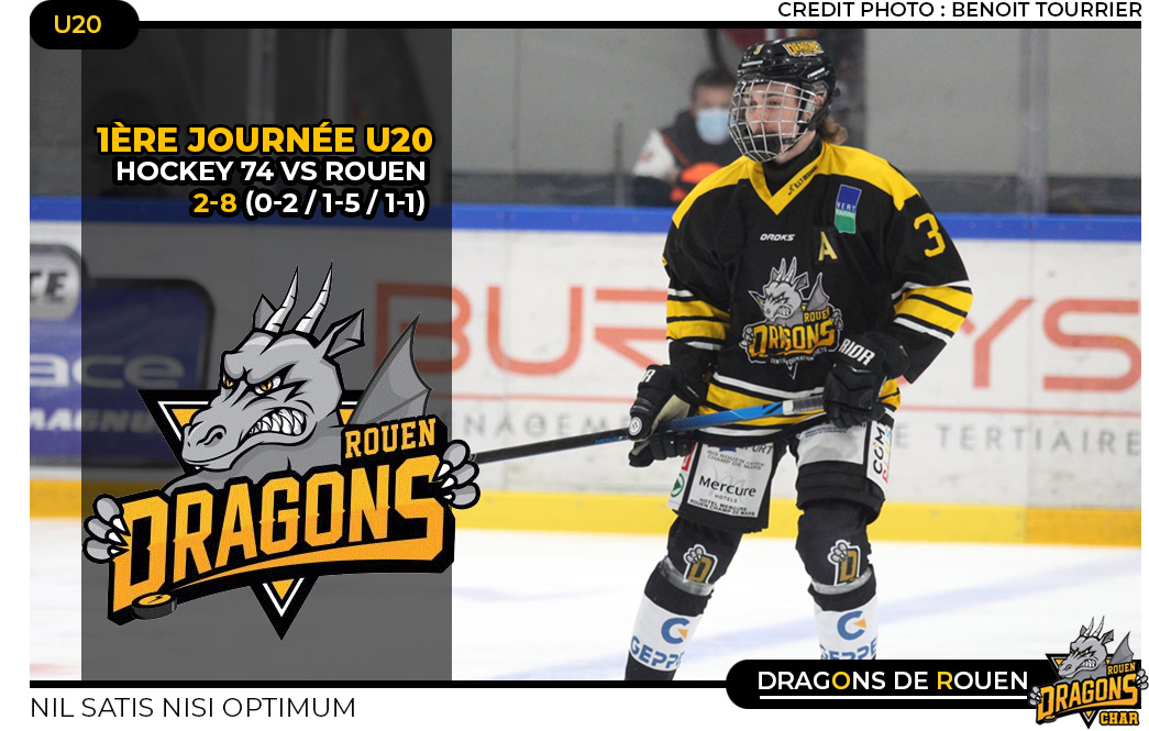 Passé un premier quart d'heure qui aura laissé les deux cerbères sereins, avant la fin du premier tiers, les Dragons profitaient d'un temps fort pour ouvrir le score avant de doubler la mise quelques secondes plus tard. A la baguette sur le premier but, Eliott De Mali trouvait l'ouverture (16'34) imité dans la foulée moins de deux minutes plus tard par le défenseur Noa Goncalves-Nivelais (18'17) Clôturé après vingt minutes de jeu à 2-0, le score de la rencontre évoluera sensiblement dans le deuxième tiers, les rouennais accélérant sensiblement pour se mettre bien au chaud au coin du feu. Ainsi, dès l'entame du tiers médian, Matéo Bussat prenait un malin plaisir à porter l'estocade avec le 3-0 (21'27) La tornade jaune et noir déclenchée, les Dragons pouvaient compter sur le soutien offensif de Jordan Hervé (25'06) et Noa Goncalves-Nivelais (28'23) pour lester l'addition à 5-0. Alors que le franchissement du cap de la mi-match permettra aux joueurs de Haute-Savoie de réduire le score par l'intermédiaire de Léandre Muchery (30'37) teigneux, les Dragons n'entendaient pas laisser les locaux espérer longtemps un improbable retour au score.