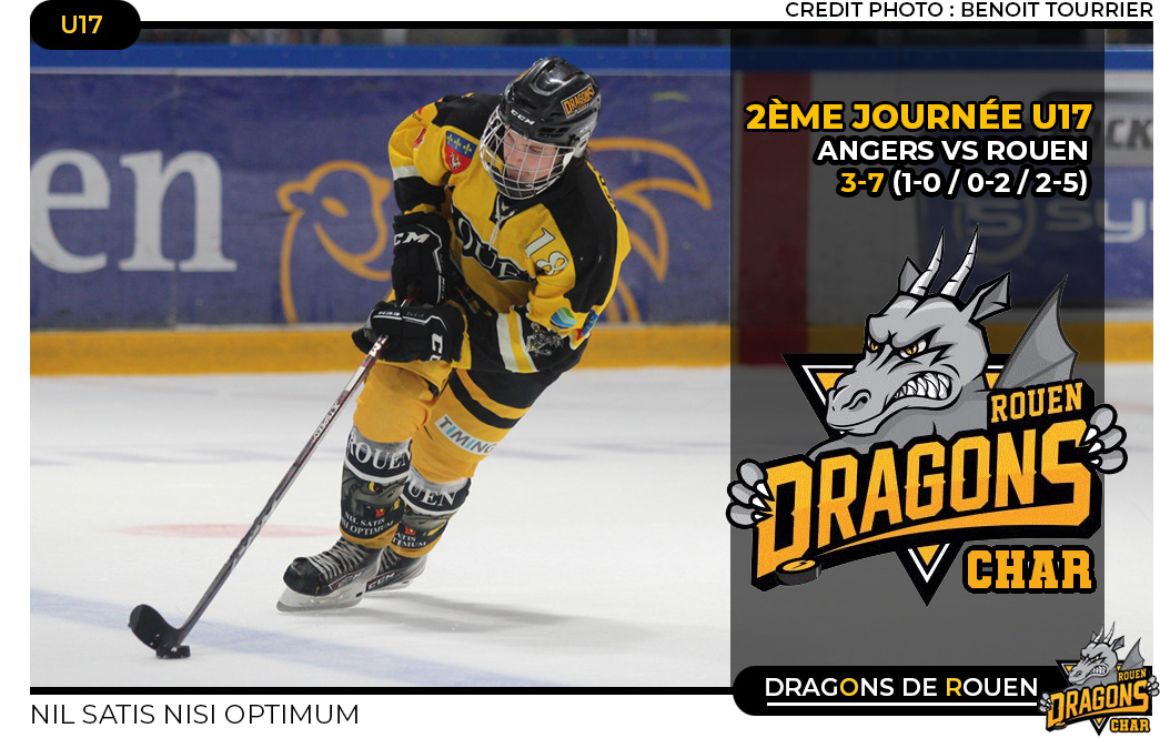 Huit ans que les Ducs angevins n'étaient pas venu s'imposer en Cadet à Rouen et pourtant samedi dernier au terme d'une partie congelée sur le score de 2-2 alors que les Dragons auront mené au score jusqu'à 2-0, Basile Tretout pour les rapaces visiteurs donnait la victoire aux siens. Cette fois, son compère Louis Groussaud en avantage numérique (06'52) qui prenait malin plaisir à tourmenter les normands en ouvrant le score rapidement dans la partie. Déjà en difficulté précédemment avec une périlleuse séquence en infériorité numérique d'entrée de jeu, la deuxième était la bonne pour les ligériens, nécessairement heureux de prendre les devants au tableau d'affichage. Alors que les Dragons s'acquitteront d'une troisième pénalité (14'30) en fin de première période, brouillons, les rouennais n'étaient guère parvenus à imposer leur jeu bien au contraire, trop empressés, trop précipités, ces derniers laissaient, au retour au vestiaire, le sentiment d'un gloubi-boulga glacé particulièrement indigeste.
