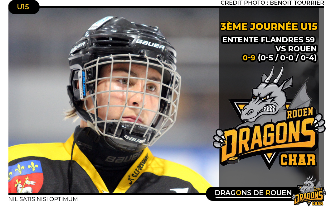 Paradoxalement, c'est la deuxième période de la rencontre qui sera la plus instructive pour les Rouennais. Après le festival offensif du premier et cinq buts marqués, les Dragons ne parviendront pas à confirmer dans le tiers médian. Intéressant à plus d'un titre pour bien mesurer l'étendue du travail à fournir encore pour être capable de livrer une partition symphonique. Néanmoins, après un interlude de vingt minutes, bien que se compliquant fortement la tâche dans le troisième tiers, les dernières minutes de la partie auront raison de la belle résistance nordiste. Relancés par un nouveau but d'Enzo Everaert (56'35) alors que le money time s'invitait sur la glace, les Dragons mettront un point d'honneur à finir en trombe la rencontre avec un triplé de but concocté dans la dernière minute par les deux Arthur, Le Roscouet (59'22) et Daubeuf (59'52) et un quatrième but personnel pour Enzo Everaert sur le gong (59'59) Une victoire 9-0, des enseignements ici ou là, un blanchissage partagé par les deux gardiens rouennais, Timéo Lebret & Alban Grandpierre, un agréable dimanche en somme passé dans les Hauts-de-France pour la brigade jaune & noir.