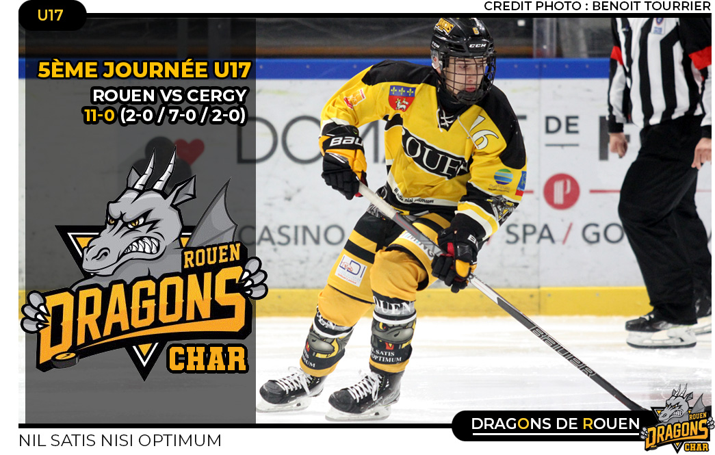 Avec quatre défaites au compteur depuis le début de la saison en quatre rencontres, c'est sur la pointe des patins que les Jokers de Cergy débarquaient sur les bords de Seine pour y défier des Dragons U17 qui, eux, restaient sur un probant succès 6 buts à 2 face à Hockey 74. Néanmoins, si sur le papier, les rouennais partaient avec l'étiquette de favori bien collée sur le casque, il faudra patienter de longues minutes avant de voir l'ouverture du score, la faute à une équipe francilienne accrocheuse à souhait qui finira par sombrer dans la deuxième période.