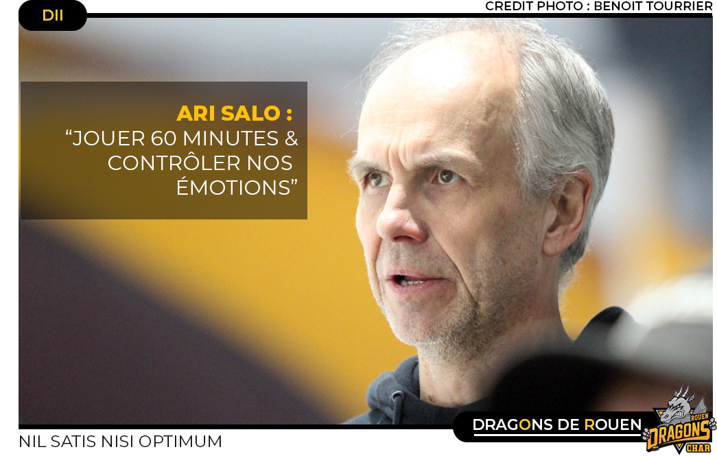 « Nous avons vraiment fait un très bon premier tiers face à Meudon même si nous aurions du marqué plus de buts» soulignait Ari Salo, l'emblématique entraîneur rouennais à l'issue de la première rencontre de championnat face aux Comètes qui aura vu l'ouverture du score de Jordan Hervé avant que les rouennais connaissent plus de difficultés dans les périodes suivantes « Au deuxième tiers, l'équipe de Meudon a mis plus d'intensité dans le jeu alors que nous nous sommes compliqués la tâche en n'étant pas assez rapide et en multipliant les erreurs, Mathis Thirion notre gardien nous a bien aidé sur cette période. Dans le troisième tiers, le jeu s'est équilibré mais nous avons fait trop d'erreurs de jeunesse, trop de cadeaux, l'équipe la plus expérimentée a gagné la rencontre » De conclure le finlandais sur cette rencontre âpre où les Dragons auront mené au score jusqu'au début du troisième tiers, Tim Aubry s'étant joint au premier but rouennais Jordan Hervé (lire par ailleurs)
