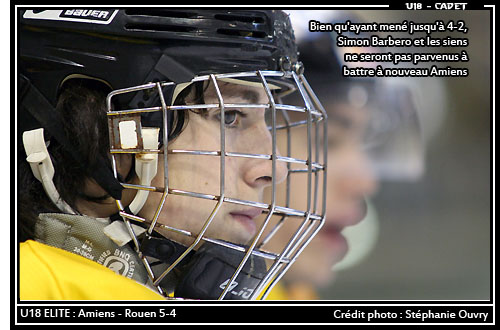 Effectivement, comme attendu, c'est en force que l'équipe picarde débutait la partie. Une bonne entame de match symbolisée par l'ouverture du score de l'ex-nocéen Kévin Spinozzi (03'29) qui ne troublait néanmoins point la quiétude affichée par les Rouennais. De retour à égalité rapidement sur un jeu en supériorité numérique conclu par Antoine Mony (08'15), c'est sur une situation de désavantage numérique que les seino-marins prendront la main dans la rencontre. Ainsi, alors que les secondes s'égrenaient doucement en direction du premier coup de gong, Florian Duval, plein d'allant, profitait des atermoiements picards pour tromper la vigilance de Corentin Cunsolo (11'00) le portier amiénois contraint et forcé de regagner son banc prématurément remplacé par Quentin Kello. Avant la fin de la première période, les Gothiques tenteront de revenir au score. A l'attaque pour prendre l'avantage, les tentatives d'Amiens seront vaines, Guillaume Duquenne restant solide dans sa cage. C'est ainsi que les deux formations regagneront le vestiaire, célébrant la fin du première période à tendance normande.