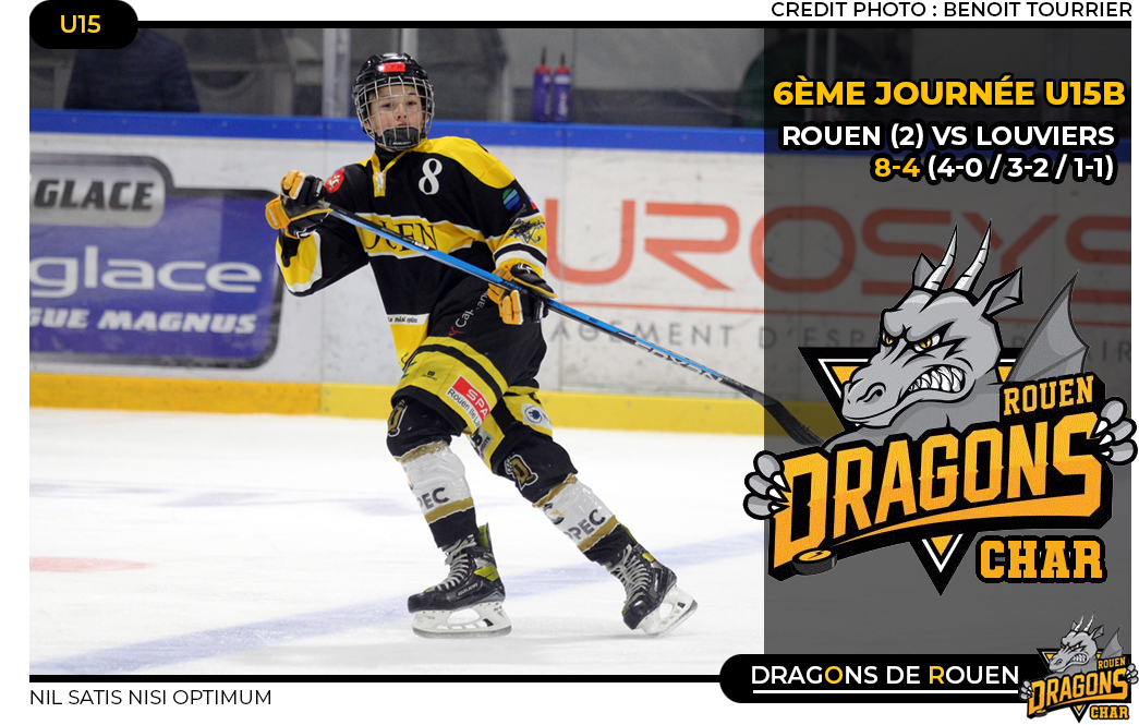 Toujours invaincues avec un bilan de deux victoires pour un match nul, l'équipe U15B jaune et noir aura profité de la venue des Loups de Louviers sur les bords de Seine pour assoir un peu plus sa première place au sein de sa poule au gré d'un succès solide 8 buts à 4.