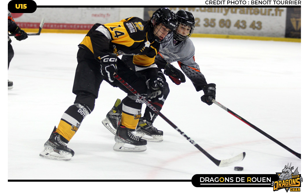 Alors que le début du tiers médian s'avérait plutôt équilibré Hugo Bernier répondant au but de Maxime Bertrand, à moins d'un quart d'heure de la deuxième sirène, les affaires s'emballaient et il devenait bien difficile d'écoper dans un navire jaune & noir tourmenté. En signant le troisième but de son équipe, Maxime Bertrand donnait des idées à ces camarades de jeu, Grégory Archibald & Alexandre Makaridze pour renverser une nouvelle fois la rencontre. En inscrivant quatre buts pour un seul subi, au moment de profiter d'une accalmie, les franciliens menaient 5 buts à 4. Si l'on aurait pu imaginer ou plutôt espérer que le dernier quart d'heure du deuxième tiers n'était qu'un simple faux pas sans importance, la dernière manche jètera un voile sombre sur cette théorie. En effet, loin de tenter de contenir des Dragons, au contraire, Boulogne / Meudon enfonçait le clou une nouvelle fois par Alexandre Makaridze. 6-4 à cinq minutes de la sirène finale, inutile de préciser que le deuxième but de Baptiste Bouilloux arrivait à point nommé pour relancer un Dragon fragilisé. Hélas, effort louable mais vain, dans la foulée, Yan Cherfane et, une troisième fois, Maxime Bertrand, en cage vide, trouvaient le chemin des filets rouennais pour un score final de 5-8.