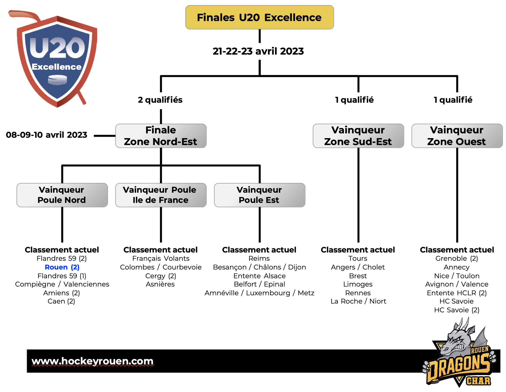 Pour espérer rejoindre la finale nationale programmée le 21, 22 & 23 avril 2023 qui réunira la vainqueur de la poule Sud-Est, Grenoble (2) & Annecy se chamaillant pour la qualification, les isérois en ballotage favorable et celui de l'est à déterminer parmi un trio composé de Tours, Angers (2) / Cholet et Brest se querellant dans un mouchoir de poche et enfin les deux vainqueurs de la finale de zone Nord-Est, les Dragons devront nécessairement s'imposant face aux Dunkerquois de Flandres 59 (2) pour conserver leur destin entre leurs gants. Lors des deux premières confrontations entre les deux équipes, sur l'Ile Lacroix, les nordistes s'étaient largement imposés 8 buts à 2 grâce notamment à un Pierre Vervoort particulièrement remuant avec quatre mentions d'assistance alors qu'au match retour dans la cité de Jean Bart, les Dragons avaient pris leur revanche avec un probant succès 9-5 où cette fois, Anatole De Mali et ses cinq points et l’inévitable meilleur compteur jaune & noir, Valentin Detouteville (4 points) s'illustraient. Une victoire de chaque coté avant cette troisième confrontation décisive dimanche à partir de 15h00 sur les bords de Seine.