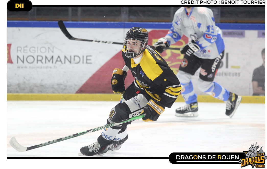 Ereintante cette fin de saison pour le groupe U20 / D2 jaune et noir. Entre les absents retenus avec la Magnus, les nombreux blessés, la courageuse troupe jaune & noir ne pouvait guère espérer mieux de son déplacement à Méribel pour le deuxième match des 1/8ème de finale de play-offs. De toute façon dans l'impossibilité de mener de front la suite des play-offs D2 et le début des play-offs U20, les Dragons auront fait avec leurs armes et leurs valeurs pour offrir au public savoyard un spectacle respectable. Ainsi, accrocheurs dans la première période en ne cédant qu'à un seul assaut offensif montagnard, celui de Marvin Krukoff avant les dix minutes (09'15), les rouennais finiront par céder en deuxième période. Acculés en défense, les rouennais craquaient une première fois dans le tiers médian face à l'inévitable Brandon Egli (26'09) Un brin sonnés & désarçonnés, les protégés d'Ari Salo finiront par accuser le coup. Même si en fin de tiers, Tim Aubry levait l'étendard jaune & noir en marquant le premier but rouennais (35'44) Entre temps Maxime Mathieu (30'55), Raphaël Charlet (31'36) et Thomas Mathieu (35'16) avaient repris le flambeau offensif savoyarde. A la deuxième sirène les rouennais devaient se contenter d'un 5-1 défavorable.