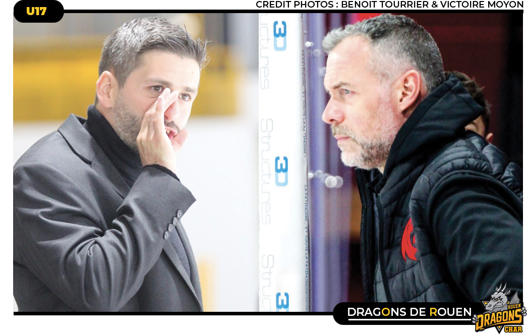 Saine rivalité, complicité évidente, entre les deux, l'histoire se poursuivra ce week-end à l'occasion du quart de finale du championnat de France U17 Elite. Si l'issue de cette confrontation reste aléatoire, une chose est sure c'est qu'au moment de se serrer la main, cette fois, le respect sera de mise entre les deux équipes, Rouen qualifié au bénéfice de sa place en poule A & Amiens qui aura du bataillé face à Strasbourg pour décrocher son billet rouennais. « Les deux matchs vont être difficiles, c'est une certitude » résume le technicien rouennais «il y a un enjeu de club & d'égo. Récemment Amiens domine en U15, nous ont fait chuté en U17B & A. Je m'attends à une vraie bataille dès le début. On devra être solide et bien dans la tête. De plus, je sais pertinemment qu'Olivier est la meilleure personne pour trouver stratégiquement quelque chose pour nous faire tomber. Je m'attends à ce qu'il me pousse dans mes derniers retranchements... » Une certitude et le duel a déjà commencé à l'image de l'habile technicien amiénois malin au moment de mettre la pression sur les épaules jaune & noir « la pression était sur nous à Strasbourg, une équipe contre laquelle nous avions perdu deux fois en saison régulière. Nous en poule B, jouant une poule C en dépit du fait qu'il n'y avait pas cette année d'écart entre les deux poules. Là, nous n’avons plus de pression , elle est sur les épaules de Rouen qui est en poule A, qui a plus de joueurs talentueux que nous . L’équipe de Rouen de septembre octobre que nous avons battu n’est plus la même maintenant, elle est homogène , a de la vitesse et est bien plus structurée qu’avant. Nous ne venons pas en victimes et allons donner du fil à retordre à Rouen dont je connais les points faibles et point forts et notre remontada de Strasbourg a fait naître plus qu’un groupe ce week-end. Et quelle bonheur de retrouver les deux Nonos dragons . Que le meilleur gagne dans un esprit de respect et de classe . » Tout est dit, conclusion parfaite. Maintenant place à la glace.