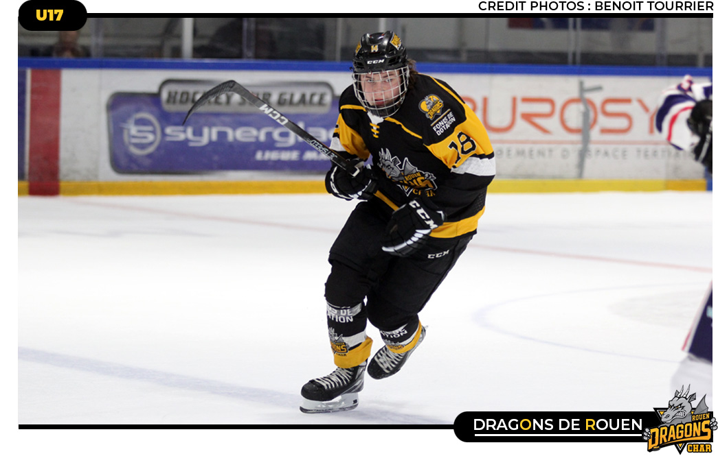 Nul doute que parmi les scenarii envisagés celui de l'ouverture du score des Ducs d'Angers n'était pas le plus opportun pour les Dragons. En effet, passée une première vague d'effroi en désavantage numérique (01 27), au retour à parité, un anodin engagement gagné en zone défénsive jaune & noir parr Brewan Cloarec provoquait le premier but de la rencontre sur un lancer voilé d'Alexis Lossev (04'13) Alors que l'on aurait pu espérer plus de soutien à la cause jaune & noir, c'est au contraire les «Angers ! Angers ! » qui rythmaient ces premières minutes dans les tribunes et donnaient des ailes à des Ducs acides sur l'entame de match qui ne tarderont pas à doubler la mise dans la foulée toujours sur un engagement. Cette fois, c'est Louis Gabard qui sortait le palet pour Fabien Ledroit, adroit au moment de renverser le jeu pour le lancer précis de Louis Groussaud pour le 0-2 (12'29) Douche froid pour les Dragons désormais dans un trouble viscéral. Néanmoins au regard de la partie jouée la veille par les U20 Elite qui seront parvenus à retourner une situation compromise avec trois buts de retard pour finalement égaliser dans les dernières minutes à 5-5 grâce notamment au triplé d'Antoine Addamo, tout restait possible pour les U17 à condition de ne pas se désolidariser et de profiter de chaque opportunité pour revenir au score. Ainsi, dans la dernière minute de jeu, sur une séquence en avantage numérique, Aaron Stemper à la bleue provoquait le lancer de Paul Le Lem. Si le gardien ligérien, Yanis Berlioux faisait l'arrêt, il ne pouvait retenir un rebond qu'exploitait parfaitement devant la cage Charles Grandpierre (19'06) 1-2 à la fin du premier tiers, un moindre mal.