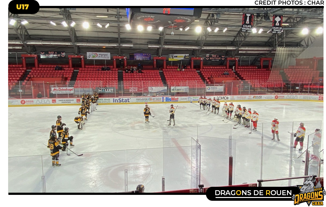 Vaincue une deuxième fois à Amiens, cette fois par l'entente Besançon / Dijon / Troyes, toujours sur le score de 8-4, l'équipe U17 Excellence voit sa saison se terminer sur ce week-end amiénois. Pas de finale nationale pour les Dragons, une sirupeuse amertume qui ne doit pas faire oublier la belle saison jaune & noir avec comme point d'orgue les dix victoires en douze rencontres de première phase.