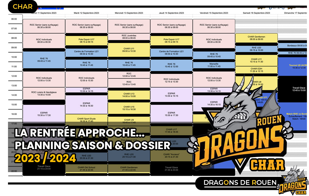 Bientôt la reprise au pays des Dragons ! Ci-dessous les horaires d'entraînements par catégorie & en lien le dossier d'inscription pour la saison à venir.