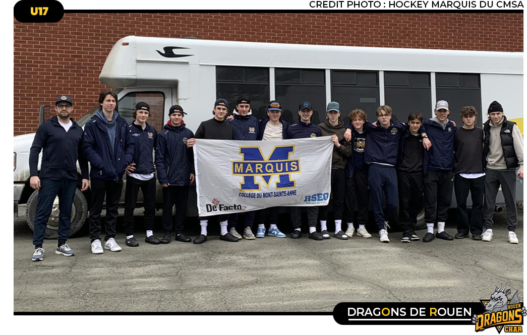 C'est avec un grand plaisir que les Dragons U17 accueilleront aujourd'hui en match amical sur l'Ile Lacroix l'équipe des Marquis du Mont-Saint-Anne M18 (19h45, entrée gratuite) Fraichement débarqués de la « Belle Province », les joueurs de Sherbrooke entament une tournée en France où ils affronteront Rouen (01 mars), Caen (06 mars) & Cergy (07 mars) Bienvenue chez nous CMSA.