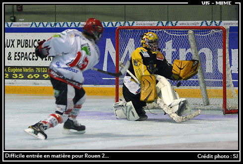 Première rencontre des quarts de finale minime avec un très gros morceau d'entrée de jeu pour les jeunes de Rouen 2. Face à l'ogre picard, les Dragons de Rouen 2 ne partaient pas avec la faveur des pronostic. Un adversaire bien connu des jeunes normands puisque durant les premières phases, Amiens 1 était déjà venu s'imposer sur les bords de Seine 9-1, 8-1.