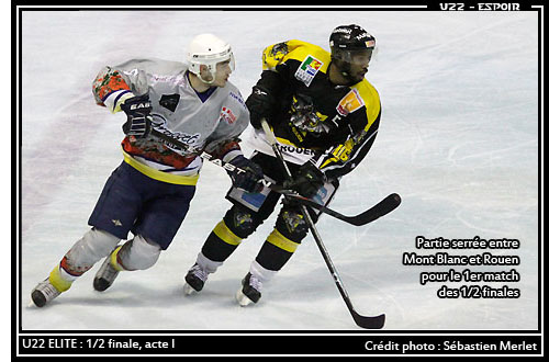 Décidément très en vue sur la rencontre, c'est une nouvelle fois Josselin Besson qui se plaçait sous les projecteurs de la patinoire de l'Ile Lacroixe en passant en revue la défense normande avant de tomber sur le contrariant Sébastian Ylönen (44'23) A force de se faire peur, les Dragons pouvaient envisager de nourrir des regrets à l'issue de la rencontre. Le temps était venu pour les rouennais de placer une petite pique bien acerbe. Sur un débordement de Peter Valier, Kévin Lorcher se montrait particulièrement solide en contournant la cage tout en temporisant. Rabattant la passe pour un Quentin Berthon lancé comme une balle, l'action était parfaite et Rouen menait désormais 4 buts à 3 (45'30) Un score qui restera inchangé entre les deux formations, Mont-Blanc démontrant qu'il n'était pas venu en touriste à Rouen et que la partie serra tout aussi serrée dimanche à l'occasion de la deuxième manche.