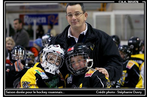 «Pour s'ancrer dans la réalité du terrain et sortir des pieux discours, concrètement c'est vers l'école de hockey que nous nous sommes naturellement tournés. Alors que jusqu'à 2008, le nombre des licenciés au club de Rouen était en déclin constant depuis cette date qui coïncide avec le retour de Peter Almasy sur les bords de Seine la courbe s'est inversée. Ainsi, de 2008 à 2011, le nombre de licenciés à Rouen est passé de 377 à 469 en seulement trois saisons et le chiffre est encore plus parlant lorsque l'on sait que 30% des licenciés à Rouen évoluent dans la catégorie moustique. Indéniablement, c'est un motif de satisfaction pour le club de Rouen qui sait désormais qu'un joli avenir l'attend dans les prochaines années. Relancer l'intérêt pour l'école de hockey avec la promotion notamment grâce au Rouen Hockey Elite 76 qui nous offre de la lisibilité durant les matchs professionnels, les actions sur le terrain, la multiplication des tournois mais également stabiliser les effectifs notamment dans les catégories les plus jeunes afin d'offrir à chacun le temps de jeu qu'il mérite qu'il soit en équipe 1 ou en équipe 2. C'est amusant, par exemple, de lire sur les panneaux d'affichage du club que le week-end du 30 avril & 01 mai, les différentes équipes moustiques de Rouen se rendront à Dunkerque pour les uns, à Boulogne-Billancourt pour les autres et enfin à Louvain en Belgique pour les derniers. Un vaste programme pour tout ces petits dragons ! Pour nous, il est important de prendre le temps nécessaire à la formation et au développement de toute notre famille de Dragons en traitant de la même façon les équipes 1 et 2, en proposant des surclassements réguliers aux plus méritants pour acquérir de l'expérience, en emmenant systématiquement les effectifs les plus larges possibles à trois ou quatre lignes et surtout en inculquant à chacun dès le plus jeune âge les valeurs de rigueur, discipline et amour du maillot. C'est toujours une fierté pour nous de compter plusieurs sélectionnés dans les équipes de France comme nos six représentants qui ont participé avec réussite aux championnats du Monde U18 ou encore chez les féminines avec Gaelle Bourdon qui aura porté les couleurs de l'équipe de France U18 féminine »