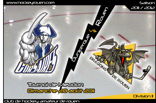 Dès lors, les Dragons retrouvaient l'enthousiasme affiché lors de la deuxième période de la rencontre de la veille face à Meudon. Intenses, explosifs, déterminés, les rouennais faisaient tanguer le navire des corsaires sur une précieuse accélération de Florian Duval qui parvenait à décocher un lancer converti au rebond par Valentin Dumélié (26'43) Menant au score désormais, les rouennais poursuivaient leur besogne en mettant sous pression le portier dunkerquois. Chahutés, les nordistes s'agaçaient de la situation et tentaient bien quelques réactions. Sur son banc, Marc Leroux sentant le vent du boulet normand, choisissait de faire rentrer son gardien titulaire habituel Marc-André Martel, renvoyant le chambreur Pierrick Boudot à sa carrière de statisticien sur le banc (29'19) Désormais conscients du danger que représentait la formation au Dragon, les Corsaires haussaient peu à peu leur niveau de jeu. A tel point que les Normands devront concéder l'égalisation peu après la mi-match en double avantage numérique sur une réalisation de l'incontournable Maurice Rozenthal (32'52) Loin d'être décontenancée, l'effrontée équipe rouennaise s'essaiera à plusieurs reprises sur la fin de tiers pour faire pencher à nouveau la balance. Thomas Dreyfus livrait sur un plateau d'argent le café, la crème, les croissants et tout ce qui va avec à son vis à vis défensif Clément Derepper (34'48) tandis que Léo Guillemain s'essayait au lancer de loin bien capté de la mitaine par Martel (38'58) En dépit de ces quelques tentatives tranchantes, les deux formations devaient se contenter du score de parité à 2-2.