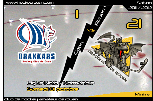 Bouclant la première période sur le score de 7 buts à 1, la deuxième période ne fera qu'accroitre l'écart entre les deux équipes. Creusant le fossé à nouveau de quatre buts, les Rouennais poursuivront leur chemin serein jusqu'à la fin de la période en rajoutant une dizaine de buts dans le filet de l'infortuné portier caennais. En s'imposant 21 buts à 1 face aux voisins caennais, les jeunes Dragons décrochent leur troisième succès « officiel » de la saison avant la prochaine confrontation face à Rouen 2 (mercredi 16h45, entrée gratuite)