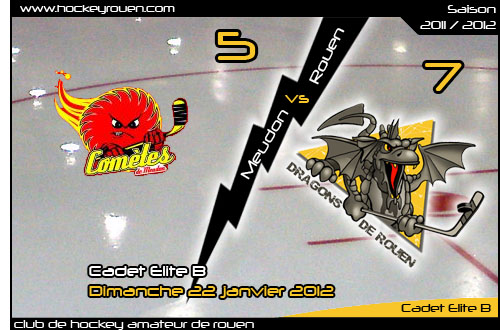 Etrillés par Amiens 2 en Picardie (16-3) bien plus solides à domicile toujours face aux Gothiques (6-3), les Comètes de Meudon, médaillés de bronze de la ligue Ile de France, auront tenu en respect les Dragons de l'Elite B pendant de longues minutes. En effet, le charme des patinoires parisiennes faisant, les Dragons mettront deux périodes avant de prendre définitivement le match à leur compte. Auparavant, les Rouennais débutaient solidement la rencontre. Ouvrant le score en avantage numérique par Daniel Babka (02'49), les Rouennais en dépit d'un retour à parité signé de Victor Agopian (14'08) boucleront la période en tête grâce à un deuxième but signé en désavantage numérique par Jérémy Delbaere (19'15)
