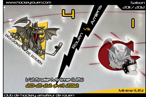 Le règlement de ce tournoi de demi-finale U15 est conforme au règlement des activités sportives édité par la Fédération Française de Hockey sur Glace pour la saison 2011-2012. En particulier les règles suivantes seront appliquées pendant le tournoi. Durée des matchs... Les matches se dérouleront en 3 périodes de 20’. En cas d'égalité à la fin du temps réglementaire, une prolongation en mort subite de 5 minutes à 4 contre 4, conformément aux règles de prolongation de l’IIHF sera effectuée. Si aucun but n’est marqué durant la prolongation, une série de 3 tirs au but sera effectuée, puis des tirs au but selon le principe de mort subite.